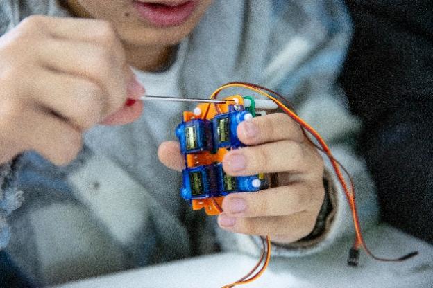 书院40名学生参与了机器狗制作活动。经历数小时的零件组装、程序调试之后,多只机械宠物生动、整齐地展示了特定设计的动作,让参与者获得了科创实践的成就感。
