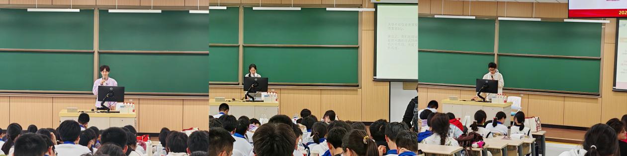 的王娜蓝三位同学依次分享。三位同学结合自身求学经历和成长历程,分享了在北航的学习生活体会与成长感悟,围绕大学专业学习、校园生活及生涯发展规划等内容表达所思所悟,帮助中学生构建起更全面、更立体的认知。