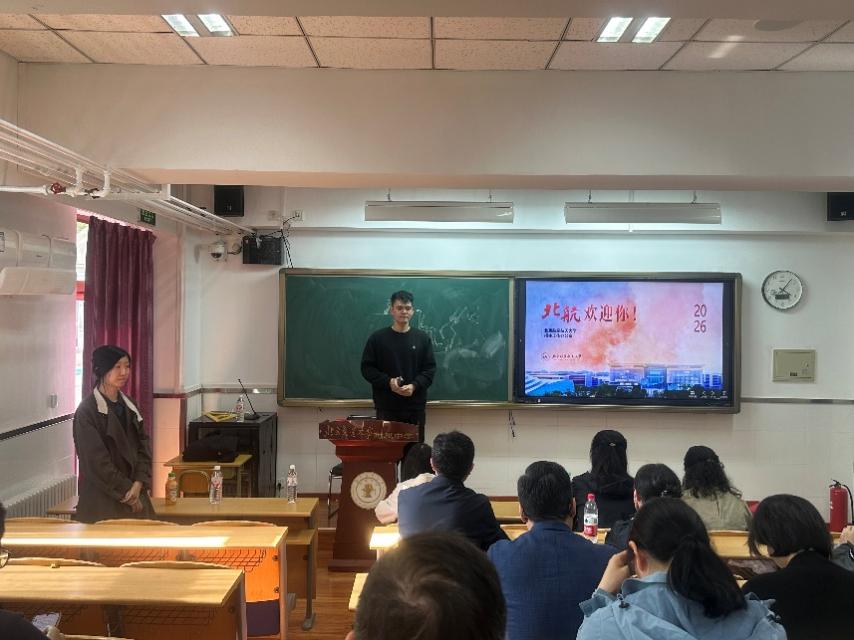 招生组与北京交通大学附属中学高三年级主任座谈,围绕生源情况、北航发展与招生政策、大中贯通合作等进行充分交流。宣讲环节中,张路杨面向高三学生及家长,系统介绍了北航的办学优势、学科特色、人才培养成效,并详细解读强基计划的招生专业、培养模式及报考流程。他重点介绍了北航强基专业的特色优势及本年度新增专业,指出强基计划聚焦国家重大战略需求,鼓励有志于服务国家关键领域发展的优秀学子报考北航。宣讲现场气氛热烈,学生和家长反响积极。