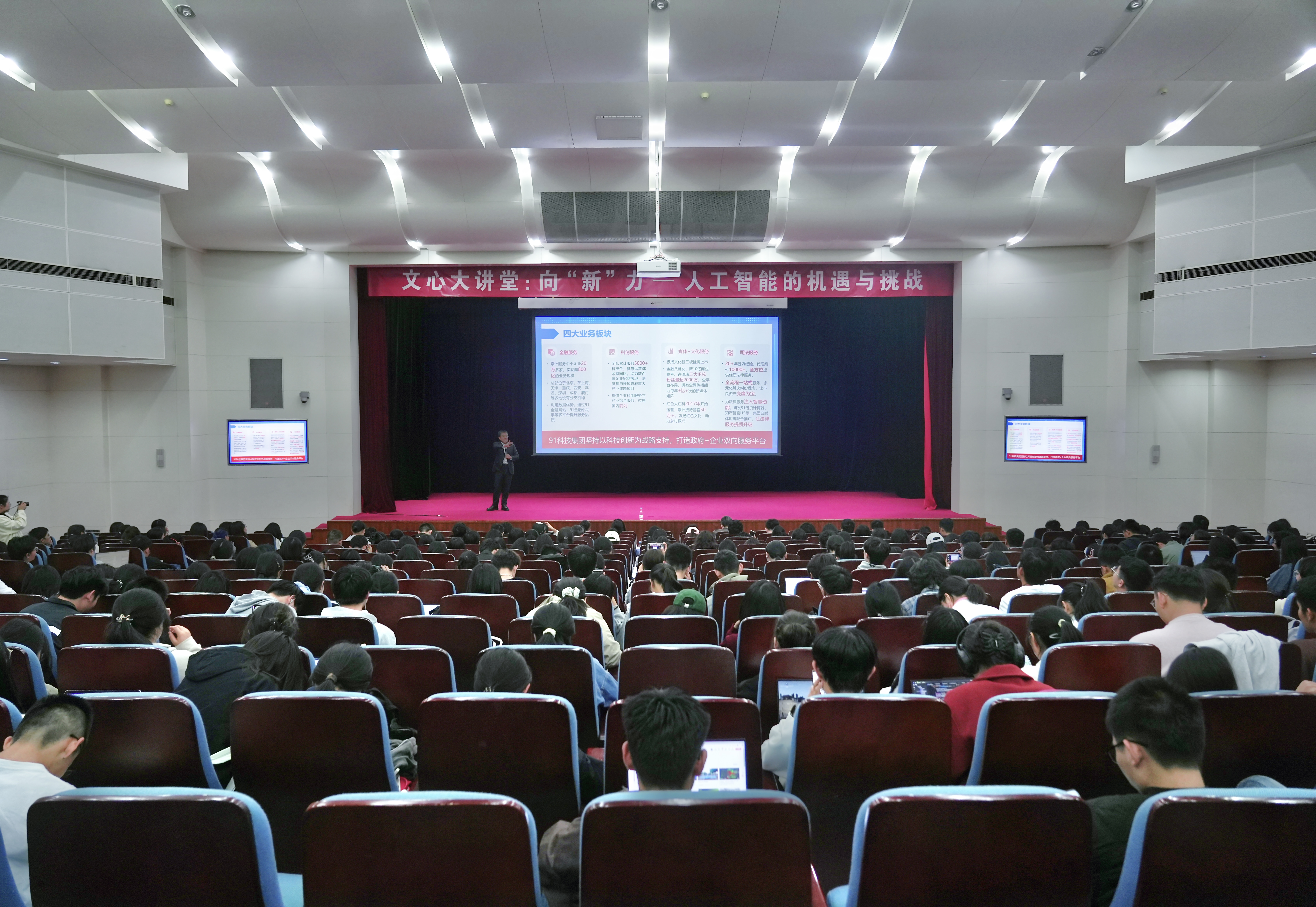 路校区学术交流厅作《向“新”力——人工智能的机遇与挑战》专题博雅讲座。91科技集团风控业务负责人苏毅、品牌总监张宏伟,法欧美色情片