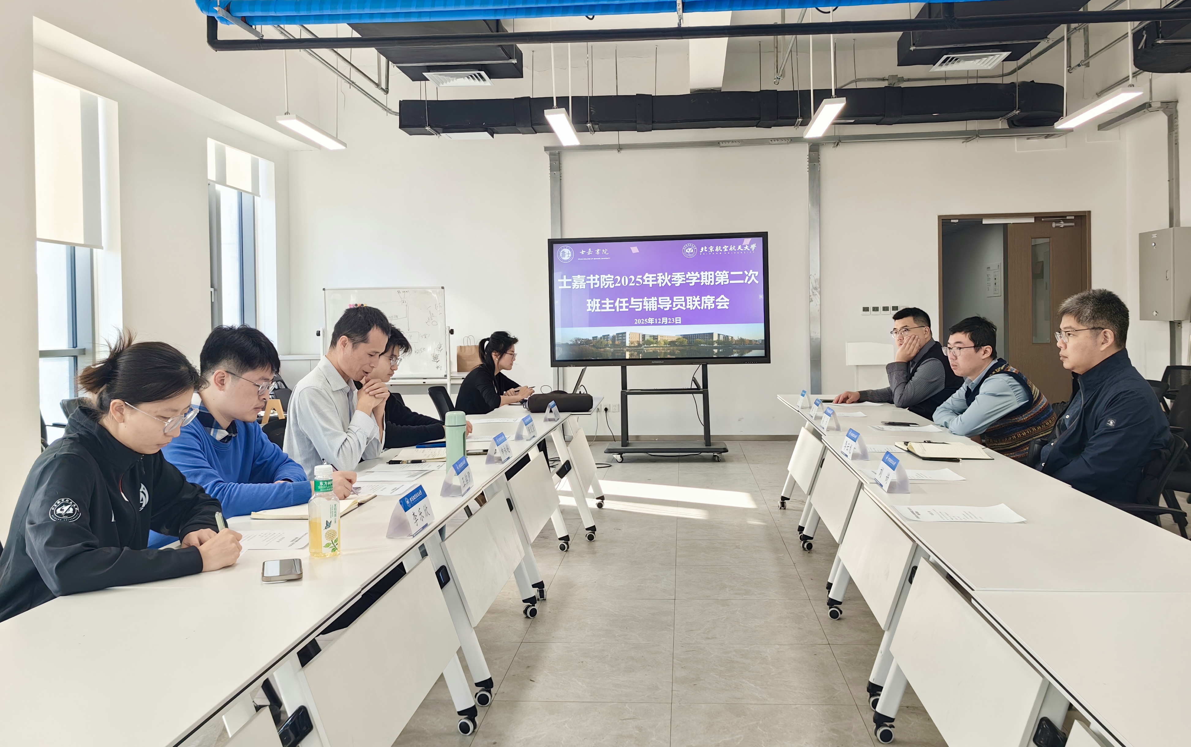 (通讯员 谢贝贝)为进一步强化班级管理与学生服务工作,搭建班主任与辅导员协同育人沟通桥梁,凝聚育人合力,12 月 23 日中午,士嘉书院在沙河校区科研四号楼 806 召开 2025 年秋季学期第二次班主任与辅导员联席会。各位班主任及书院执行团队成员共同参会。